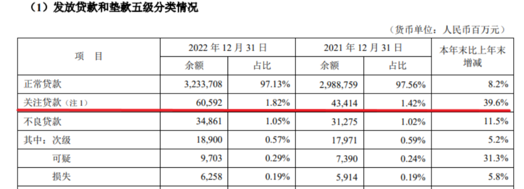 三是关注贷款余额大幅飙升。关注贷款不记入不良贷款统计范围内,但有可能未来会转化为不良贷款。