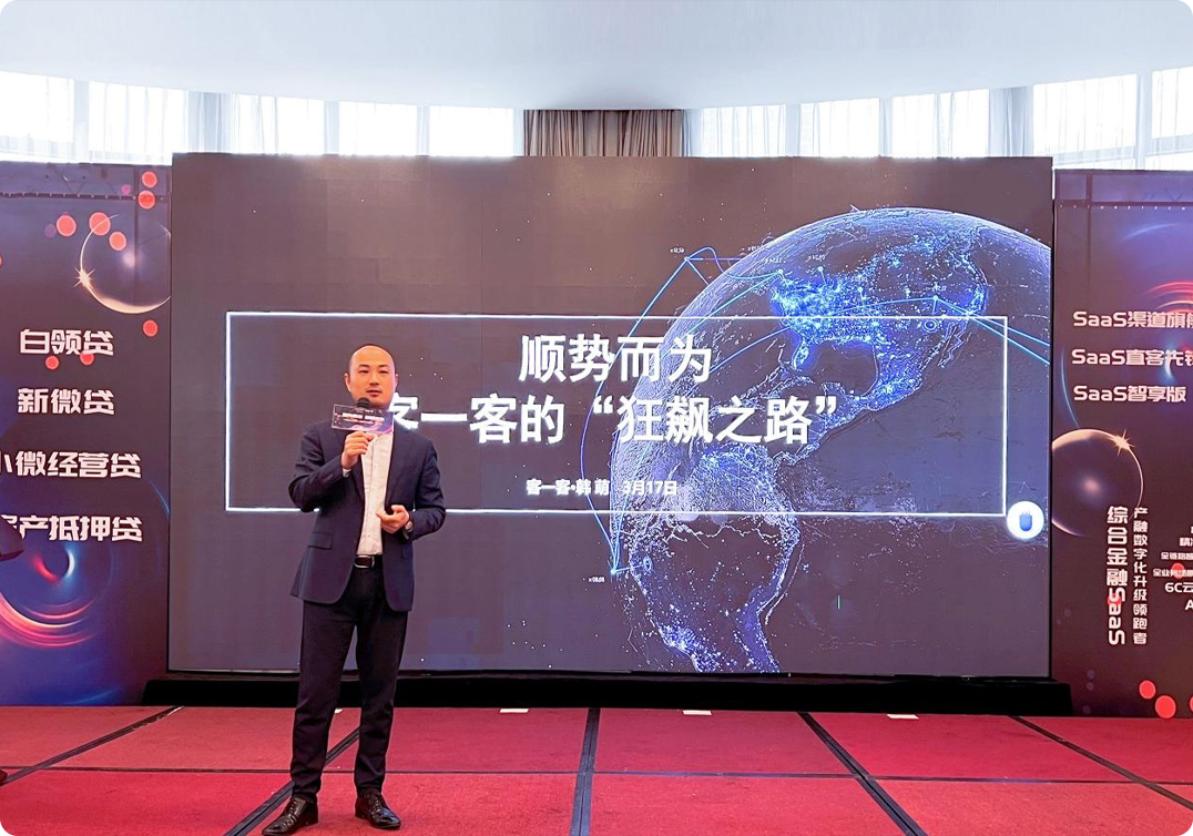 会上,客一客COO韩萌向在场的来宾们介绍了客一客综合金融营销科技平台的定位,以作为产业数字化升级的推动者角色介绍了该公司的发展历程。