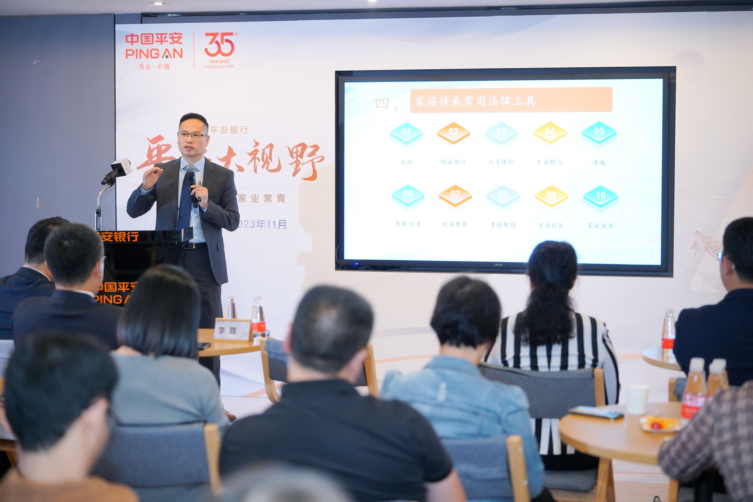 近日,平安银行在广州、佛山及中山举办平安大视野“家族传承与家业长青”主题活动,邀请盈科律师事务所高级合伙人、全国信托与财富传承法律专委会主任李魏,平安银行顶级私行业务总监熊俊、周栋及高级业务经理张跃振,从法律架构、财富管理、家企风险隔离等专业视角,给出了一些指引和建议。