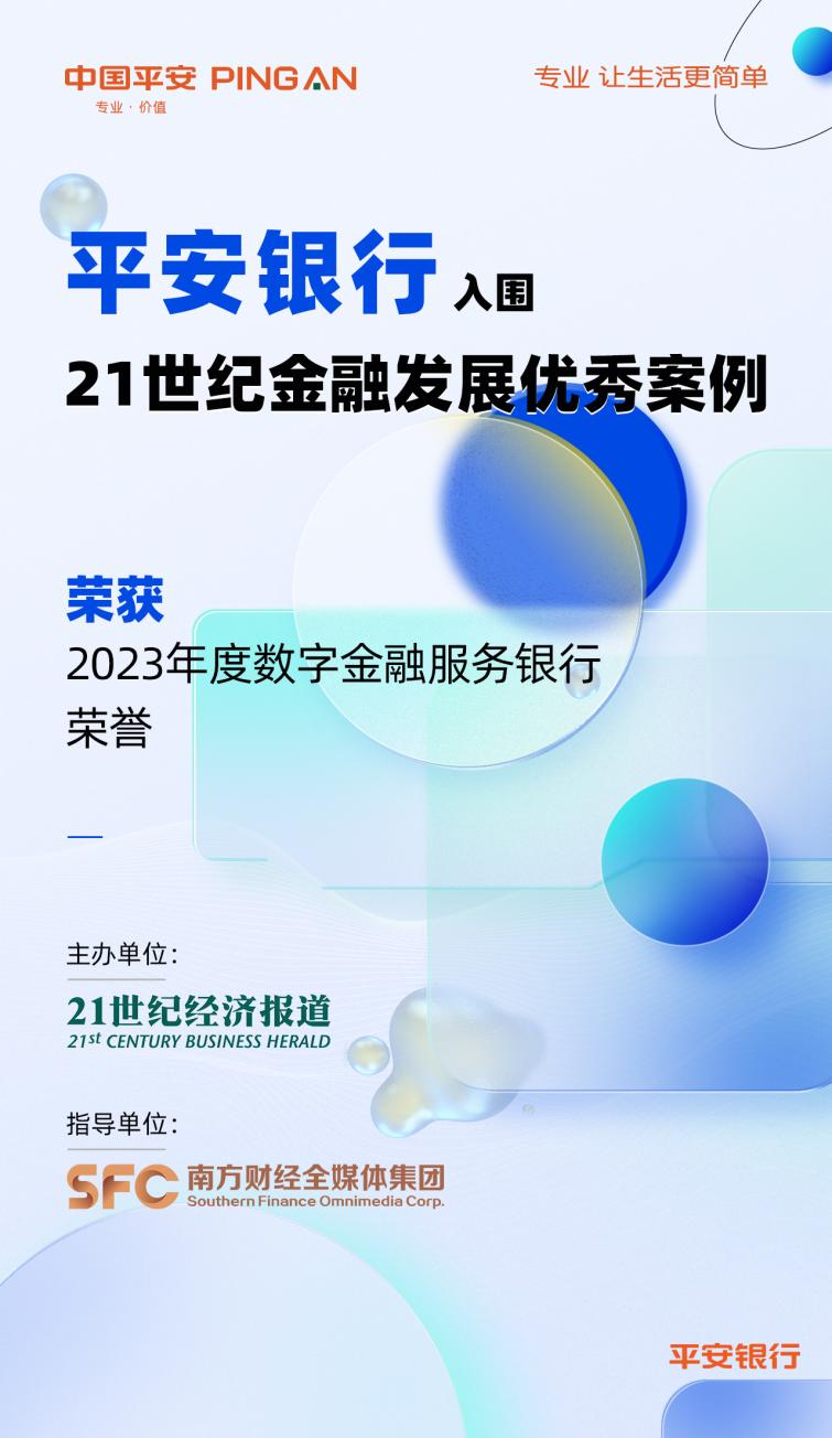 11月21日,由21世纪经济报道主办的“21世纪金融发展年会”正式落幕,会上,21世纪金融发展优秀案例评选结果(2023)正式揭晓。平安银行凭借金融科技实力与银行业务深度融合沉淀的数字化能力,获颁“2023年度数字金融服务银行”奖项。据悉,此次评选活动由21世纪经济报道依托智库平台和数据终端,对金融机构的先进做法及案例进行全面梳理总结,最终由多位专家和机构结合严格的指标评定,旨在挖掘助力实体经济发展的年度优秀样本,展示金融标杆力量。