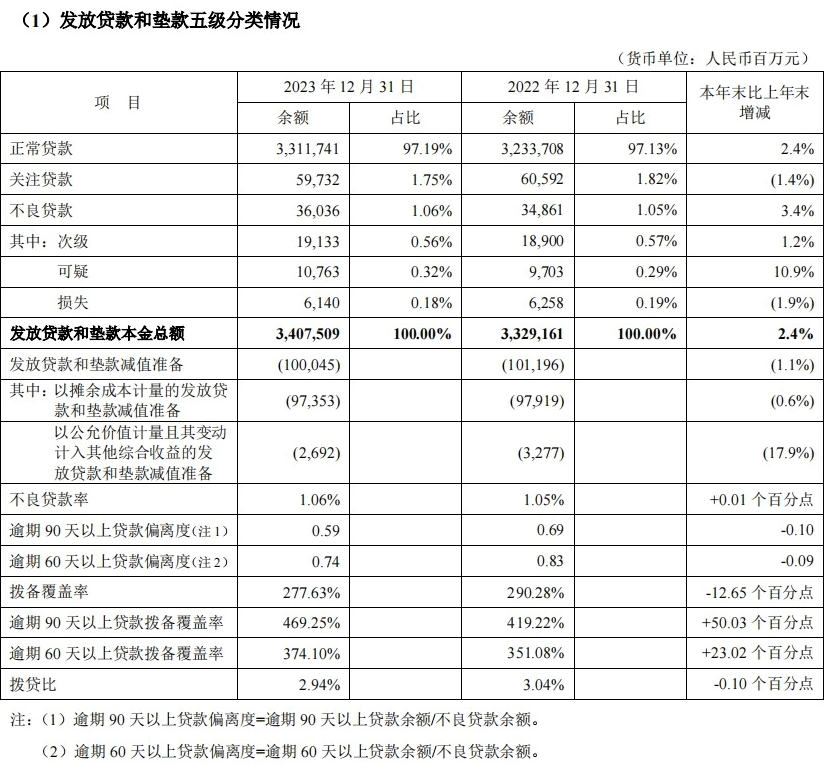 2023年,宏观经济运行整体回稳向好,平安银行积极应对宏观经济环境变化,加强资产质量管控,推动风险防范和化解。该行资产质量整体平稳,风险抵补能力保持良好。
