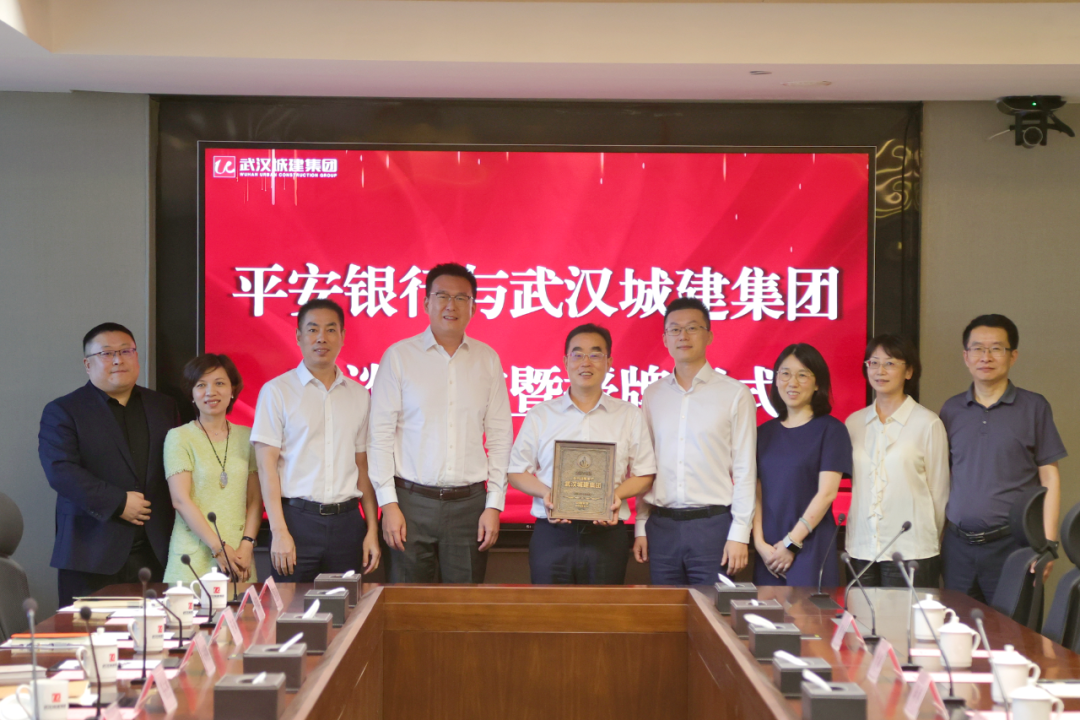 8月12日,武汉城建集团与平安银行座谈交流,举行总行战略客户授牌仪式,围绕当前合作项目推进情况和下阶段重点合作方向深入洽谈。集团总会计师邓涛,平安银行武汉分行党委书记邹越,平安银行总行战略客户部副总经理朱嵬等参加座谈和授牌仪式。