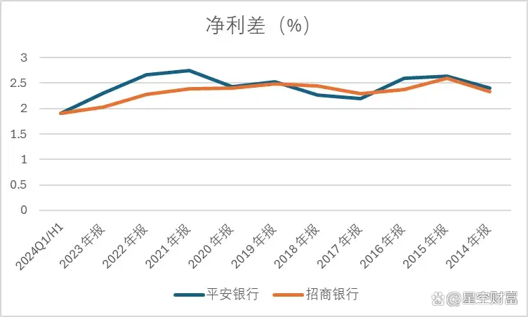 但近三年,无论招商银行还是平安银行,利差都在不断下行。而横向对比,平安银行降幅明显更大。