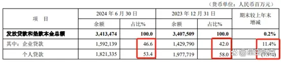 但企业贷款利率远不及个人贷款。2024年上半年,个贷平均收益率5.90%,而企业贷款、票据贴现的利率则分别只有3.70%、1.87%。