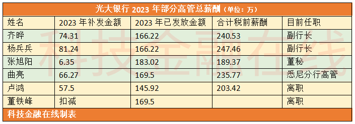 2023年3月,董铁峰已经从光大银行离职,其在2023年领取的薪酬为169.5万。