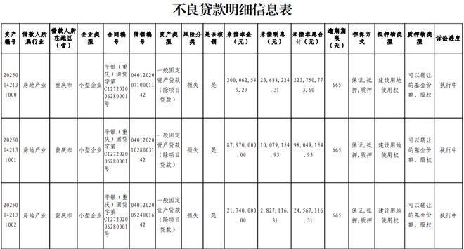 据转让公告载述,该单不良涉及重庆正弘朗源置业发展有限公司,从合同编号“平银(重庆)固贷字第 C1272020 06280001号”及借据编号“04012020 0710001142”来看,下图表格所列的三单均为该同一家债务人。
