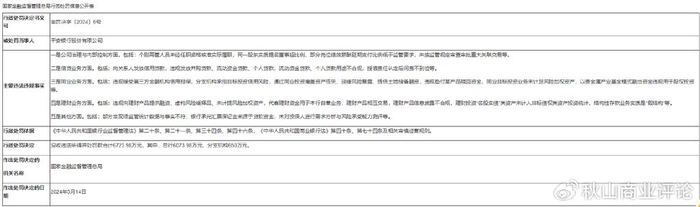 值得一提的是,2024年5月份,平安银行被国家金融监督管理总局罚款6723.98万元,其中总行6073.98万元,分支机构650万元。