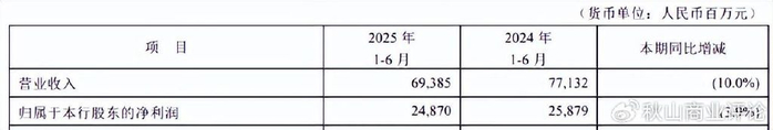 根据半年报,平安银行今年上半年实现营业收入693.85亿元,同比下降10.04%;实现净利润248.7亿元,同比下滑3.9%。