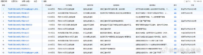 平安银行因违法违规被罚的情况并不少见,根据企业预警通的统计,从2016年6月14日到2025年3月12日,平安银行仅总行一级就被监管机构累计罚没1.5亿元。