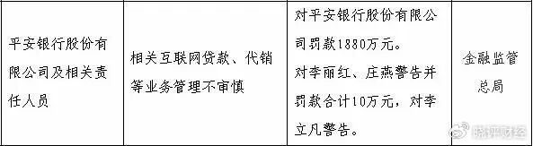 就在不久前,10月31日,因互联网贷款、代销等业务管理不审慎等问题, 平安银行 总行被国家金融监管总局重罚1880万元,成为年内单笔罚款金额最高的罚单之一。