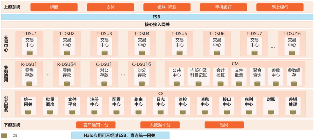 旧核心系统是通过单机高性能的小型机和集中化的高性能数据库来支持高并发的业务,但是在“双十亿”的价值目标下,需要通过单元化、分布式架构来支撑。