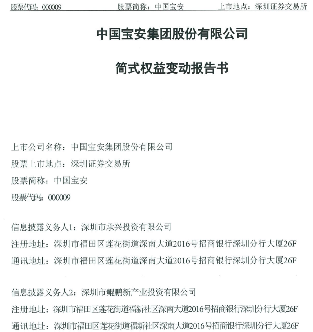 12日披露的权益变动公告显示,承兴投资与鲲鹏新产业在未来12个月内可能根据其战略发展需要、中国宝安业务发展情况以及二级市场走势等进行综合研判,继续增持中国宝安股份。