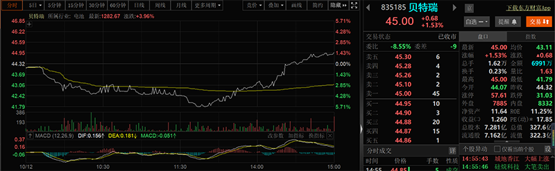 截至10月12日,贝特瑞总市值超300亿元。