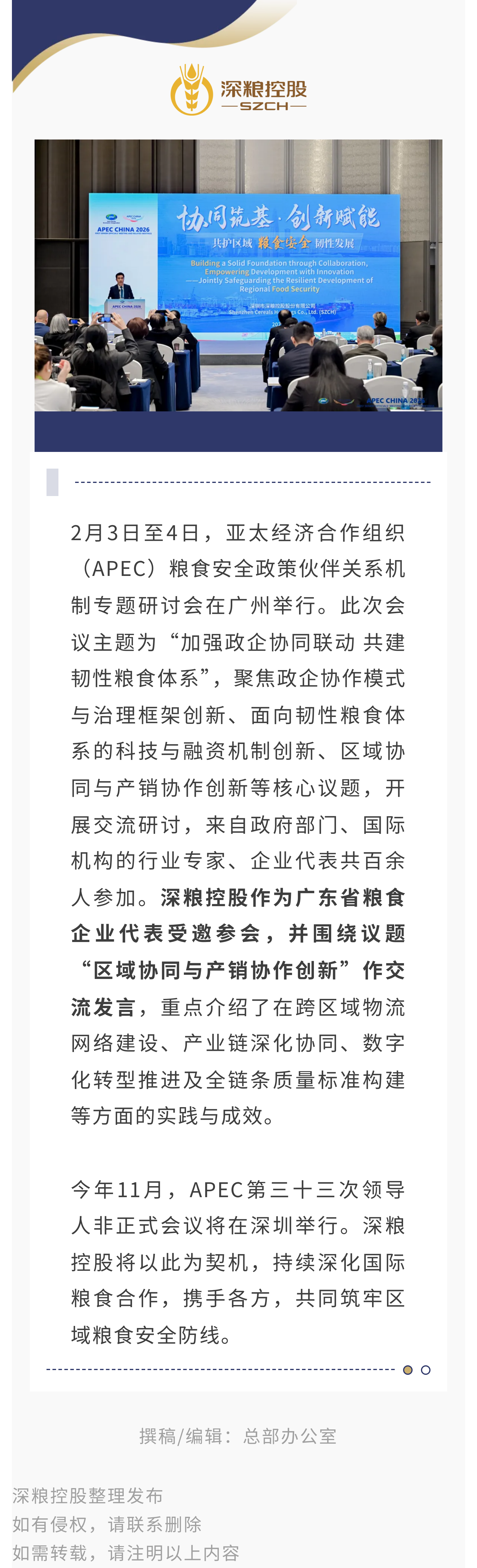 深粮控股受邀参加亚太经合组织粮食安全政策伙伴关系机制专题研讨会