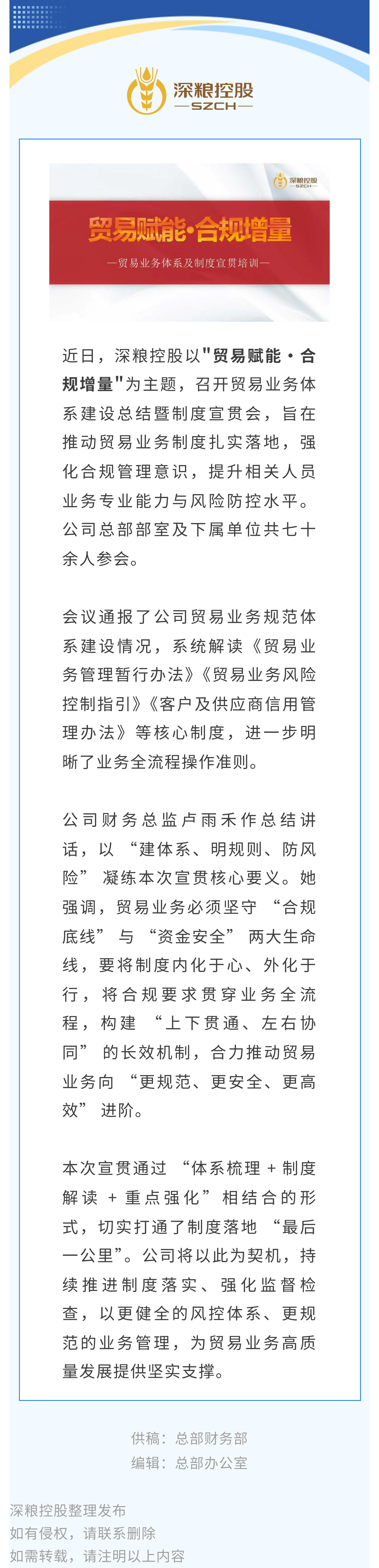 深粮控股召开贸易业务制度宣贯会