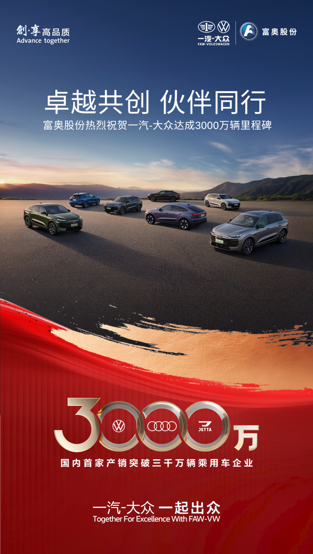 富奥股份热烈祝贺一汽-大众达成3000万辆里程碑