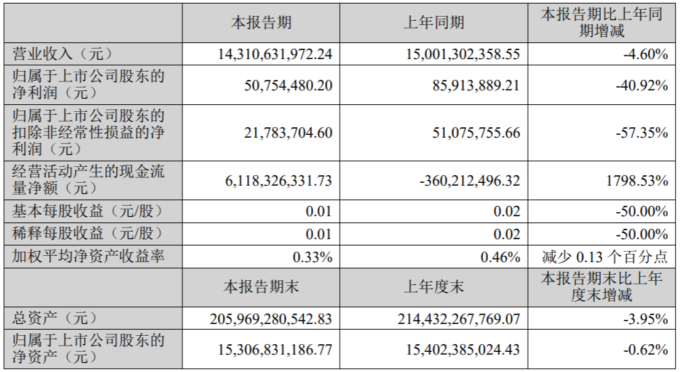 2023年上半年,大悦城实现净利润5.40亿元,同比下降48.92%,归母净利润0.51亿元,同比下降40.92%。本期因销售回款同比增加及土增税等税费支出同比减少,经营活动净现金流61.18亿元,同比增加64.79亿元。