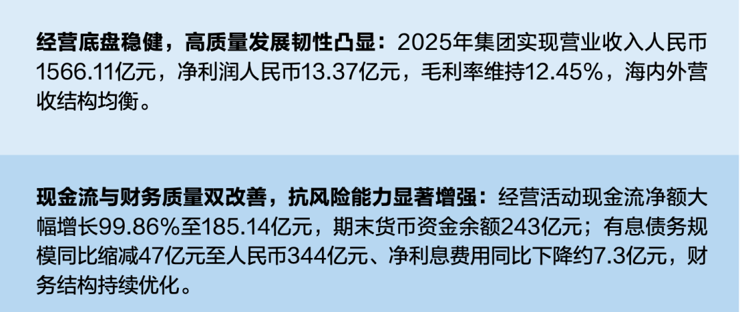3月26日,中集集团正式发布2025年年度报告。报告显示,2025年,集团紧紧围绕“构建增长新动能、聚力高质量发展”主基调,不仅稳住经营基本盘,更以前瞻性战略深化能源业务布局,取得丰硕成果。2025年全年,集团实现营业收入人民币1566.1亿元,净利润达人民币13.4亿元,公司经营活动产生的现金流量净额大幅增长99.9%至185.1亿元,资产结构持续优化,抗风险能力持续增强。