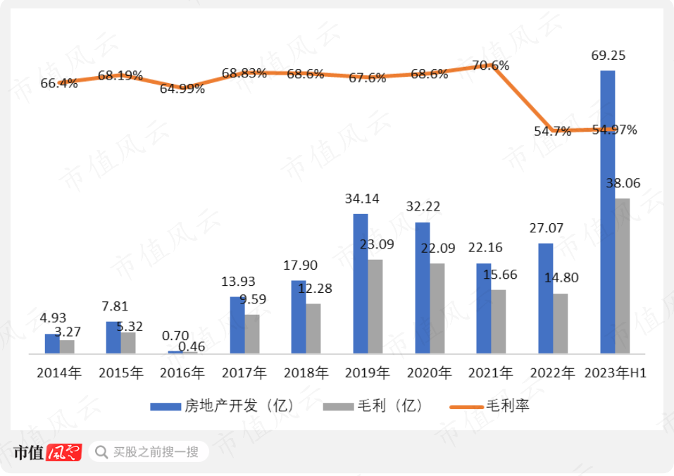 这也是京基智农没有赶上超级猪周期,近些年却基本面持续向好的主要原因,2023年上半年,公司地产业务营收69.25亿,贡献了近40亿的毛利,是上半年营收利润同比大增的主要原因。