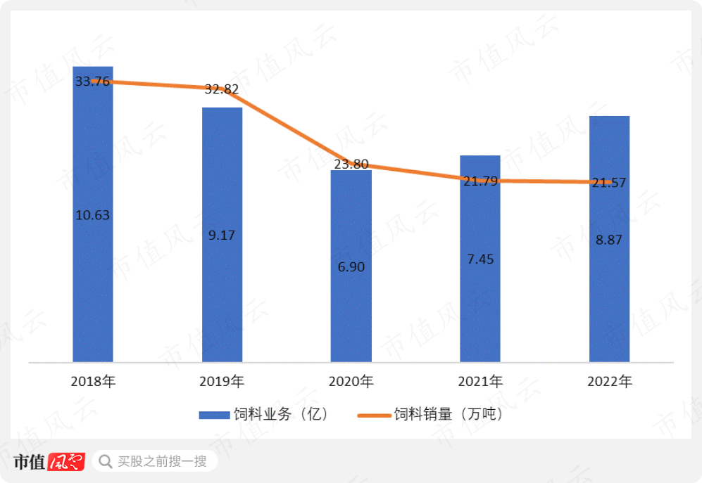 先简单说下饲料业务,虽然其营收规模在2021年和2022年略微反弹,但销量数据不会骗人,一直在持续下滑,近些年有所企稳罢了。