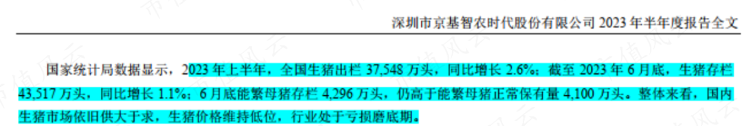2023年上半年,牧原股份共销售生猪3,026.5万头,其中商品猪2,907.7万头,仔猪109万头,种猪9.7万头,单仔猪销售量就已经超过京基智农全部生猪销量。