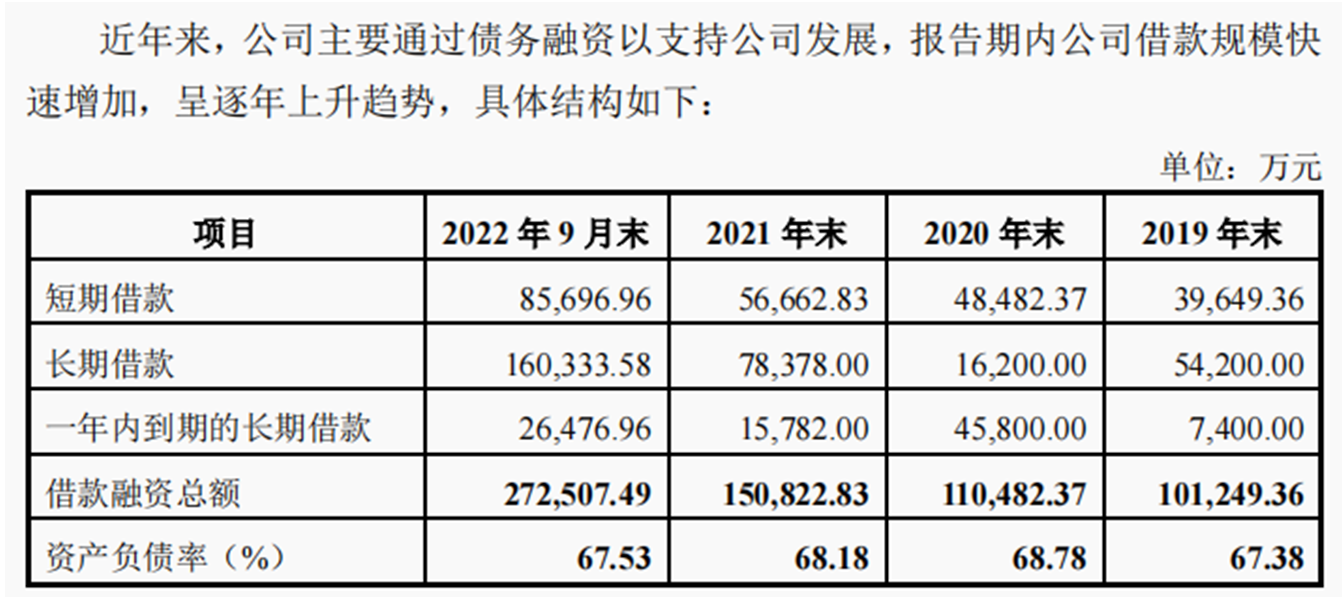 近几年来,德赛电池负债规模持续攀升,截至2022年9月末,借款融资总额已经达到27.25亿元,相较于2021年末增长超70%,公司负债总额为何上升如此之快?