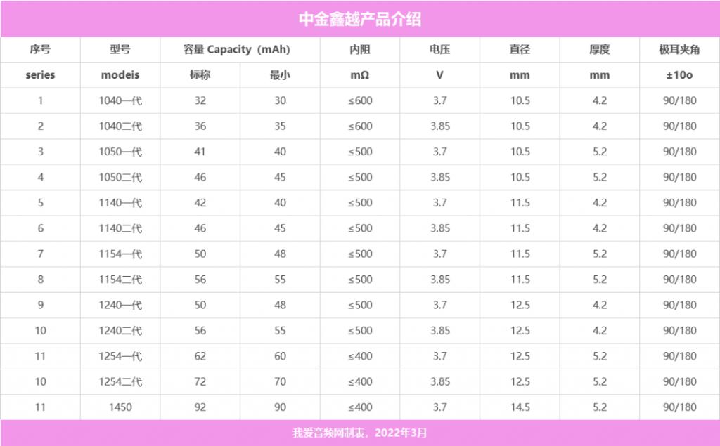 中金岭南鑫越的软包扣式电池经过三年的持续沉淀和聚焦,已经发展成系列家族,其中 1254-60mAh、1050-40mAh、1040-30mAh 已成 2021 年爆款,现已全部更新换代成 1254-70mAh,1050-45mAh,1040-35mAh,为续航焦虑保驾护航。
