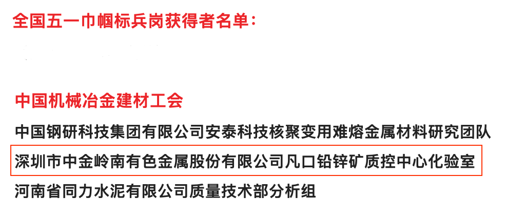 3月24日上午,中华全国总工会在北京隆重召开2023年全国五一巾帼奖表彰大会,表彰了450个全国五一巾帼标兵岗、450名全国五一巾帼标兵。中金岭南凡口铅锌矿质控中心化验室(以下简称“凡口矿质控中心化验室”)榜上有名,荣获“全国五一巾帼标兵岗”称号。
