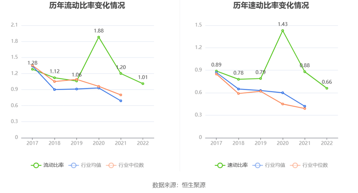 2022年,公司流动比率为1.01,速动比率为0.66。