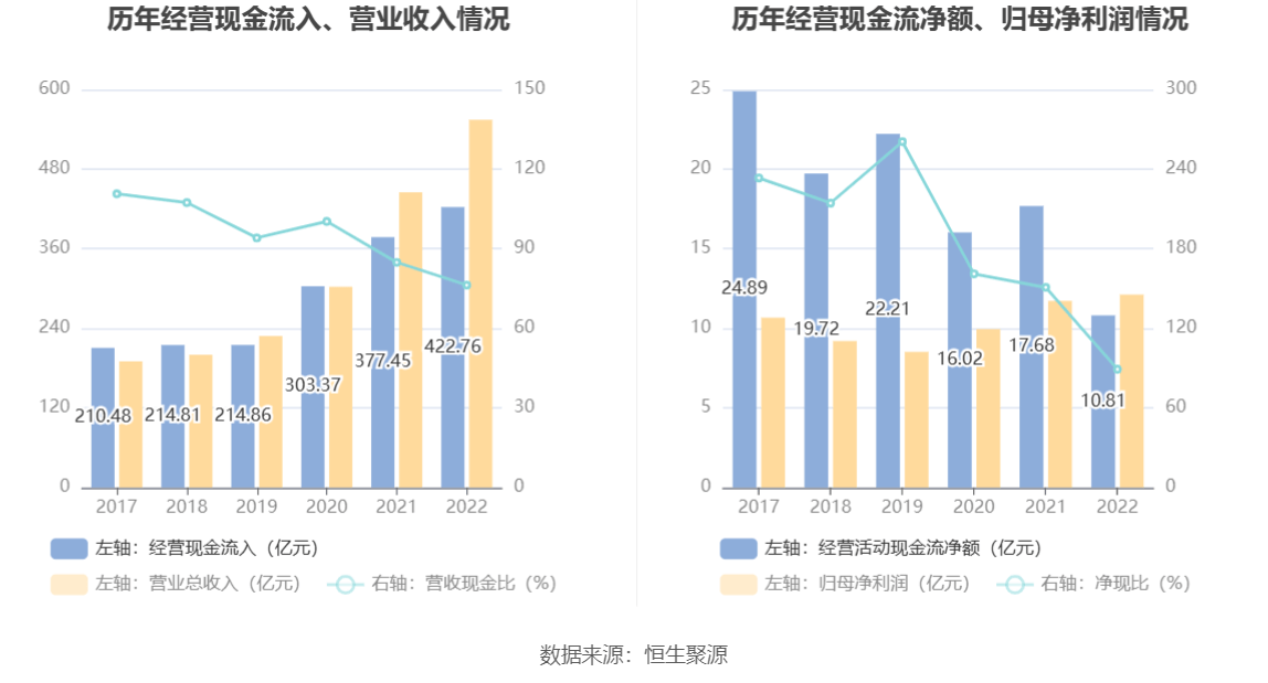 2022年,公司营业收入现金比为76.26%,净现比为89.15%。