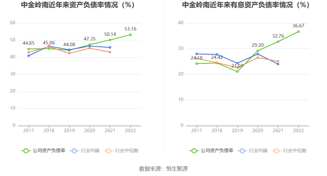 在偿债能力方面,公司2022年末资产负债率为53.16%,相比上年同期上升3.02个百分点;有息资产负债率为36.67%,相比上年同期上升3.91个百分点。