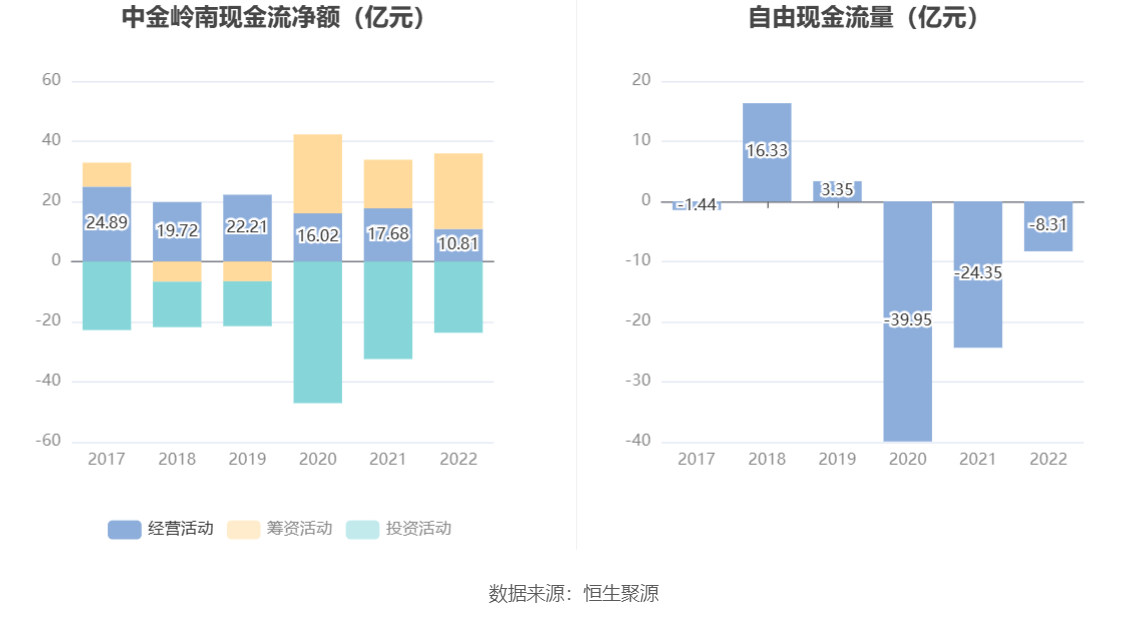 截至2022年末,公司经营活动现金流净额为10.81亿元,同比下降38.85%;筹资活动现金流净额25.15亿元,同比增长55.51%;投资活动现金流净额-23.72亿元,上年同期为-32.48亿元。