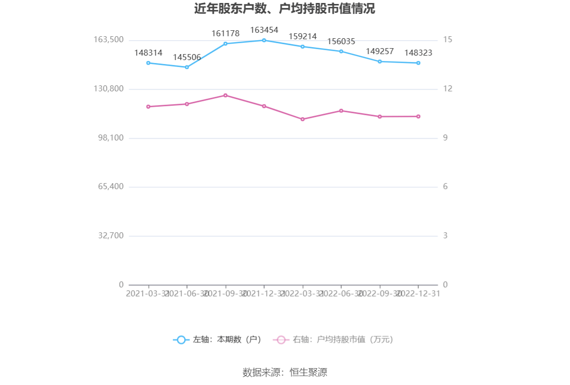 筹码集中度方面,截至2022年末,公司股东总户数为14.83万户,较三季度末下降了934户,降幅0.63%;户均持股市值由三季度末的10.32万元上升至10.33万元,增幅为0.10%。