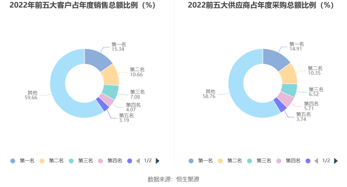 报告期内,公司前五大客户合计销售金额223.61亿元,占总销售金额比例为40.34%,公司前五名供应商合计采购金额235.14亿元,占年度采购总额比例为41.24%。