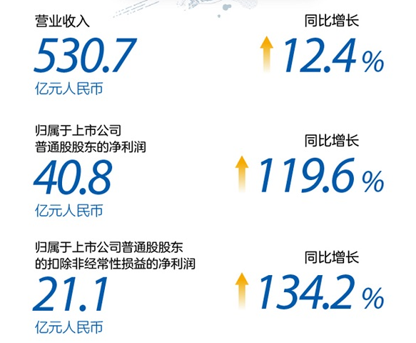 2021年上半年,中兴通讯实现营业收入530.7亿元人民币,同比增长12.4%;归属于上市公司普通股股东的净利润为40.8亿元人民币,同比增长119.6%;归属于上市公司普通股股东的扣除非经常性损益的净利润为21.1亿元人民币,同比增长134.2%。