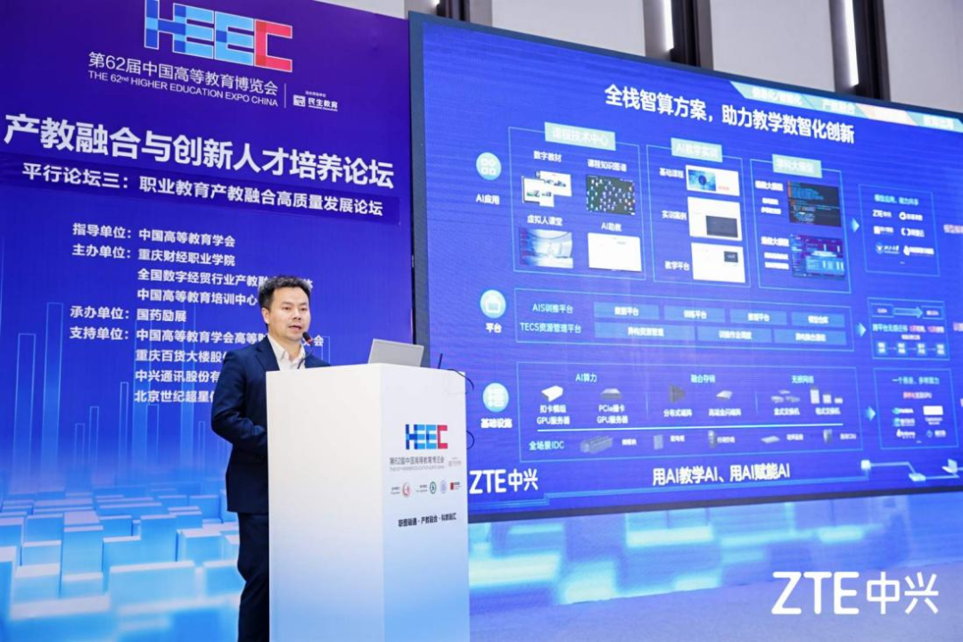 11月15-17日,经教育部批准,由中国高等教育学会主办的“第62届中国高等教育博览会”(简称“高博会”)在重庆国际博览中心盛大举办。中兴通讯以“融智聚力产教共兴”为主题亮相高博会并出席主要论坛活动,全方位展示中兴通讯在教育全光校园、智慧教育、智算育新、产教共融等领域的创新成果与实践能力。