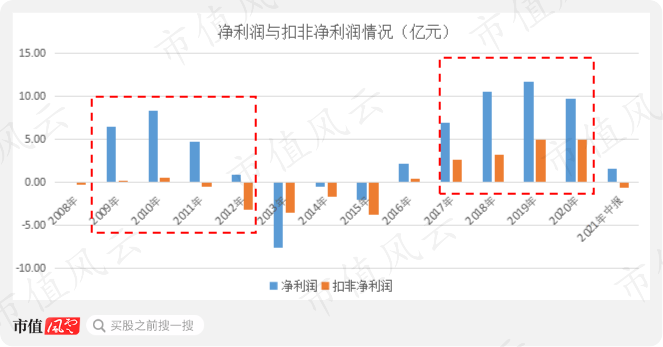 从上图可以清晰看出,净利润虽然增长很快,但是,反映企业经营所创造利润的扣非净利润,却与之有着非常明显的差距。