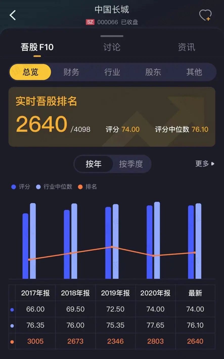 也正是因为如此,其在市值风云“吾股大数据”上的评分和排名是比较靠后的。