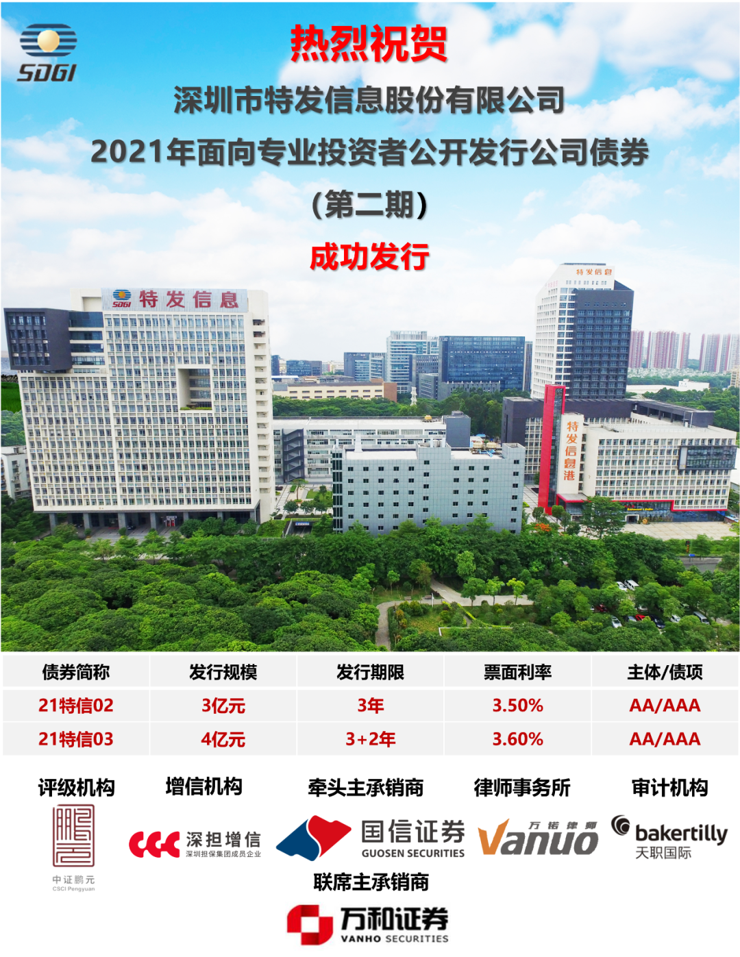 “21特信02”、“21特信03”债券的成功发行,优化了公司债务结构,也将助力特发信息十四五战略规划的落地与实现。