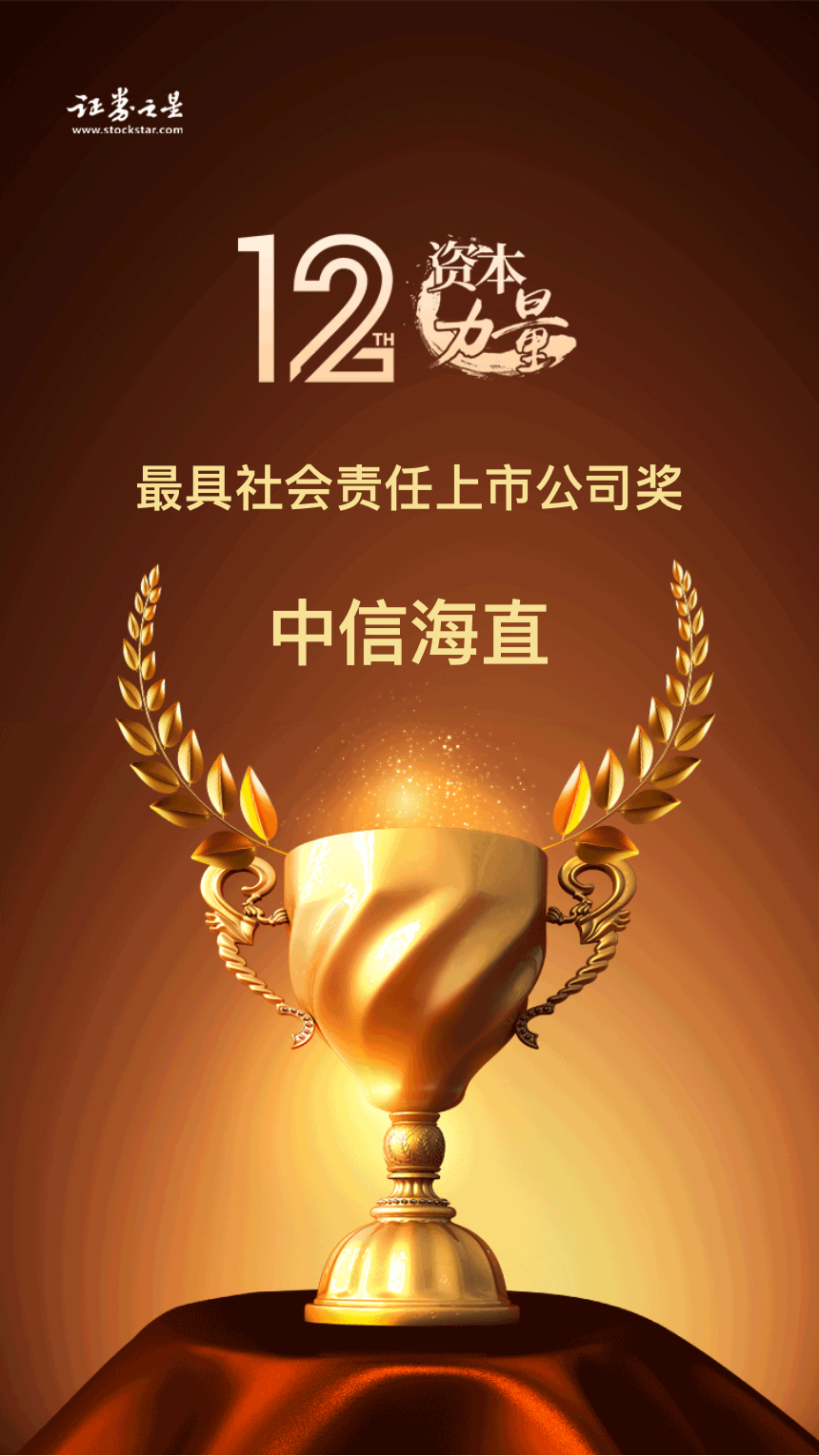 2024年11月8日,证券之星第十二届资本力量年度品牌活动圆满闭幕,中信海直以卓越的社会责任实践,荣获证券之星第十二届资本力量年度评选“最具社会责任上市公司奖”。这一荣誉不仅是对中信海直在社会责任领域杰出贡献的认可,也是对公司在推动社会和经济发展中所作出努力的肯定。