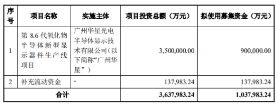 2021年11月2日,TCL科技发布了2021年非公开发行A股股票预案(修订稿),本次非公开发行股票募集资金总额不超过1,037,983.24万元,扣除发行费用后将用于“第8.6代氧化物半导体新型显示器件生产线项目”以及补充流动资金。