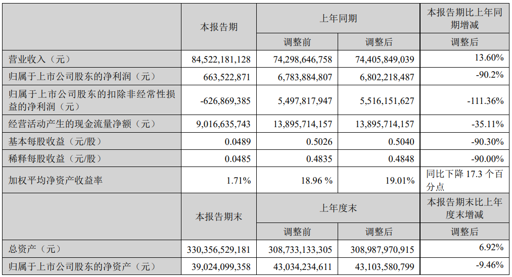 日前TCL科技发布了2022年半年度报告,报告期内实现营业总收入845.22亿元,同比增长13.6%;实现归属于上市公司股东的净利润6.64亿元,同比下降90.2%,扣非后净亏损6.27亿元,公司目前处于增收不增利的状态。