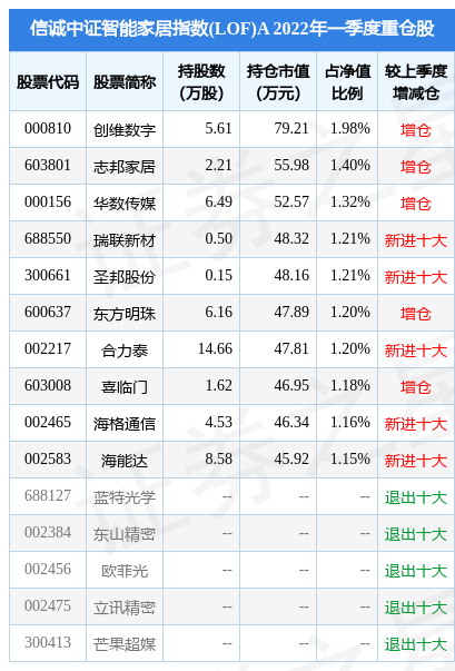 信诚中证智能家居指数(LOF)A的前十大重仓股如下: