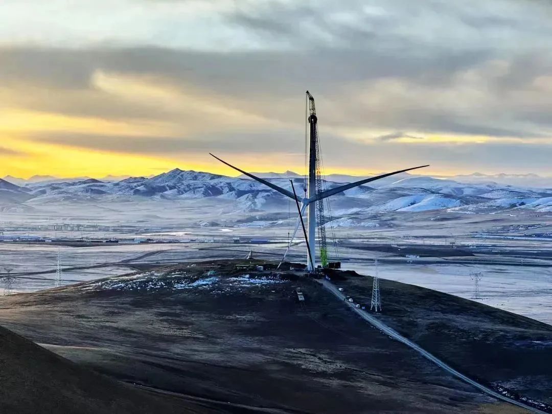 据了解,西藏那曲色尼区100兆瓦风电项目已全面完成整机吊装任务,年内即可并网发电为雪域人民送去清洁电能。这些在高原之上矗立的众多风电机组,便是贵州欧巨鑫与中联重科并肩作战、战胜重重艰难险阻的胜利丰碑,是为国家发展、民生保障的建设献礼!