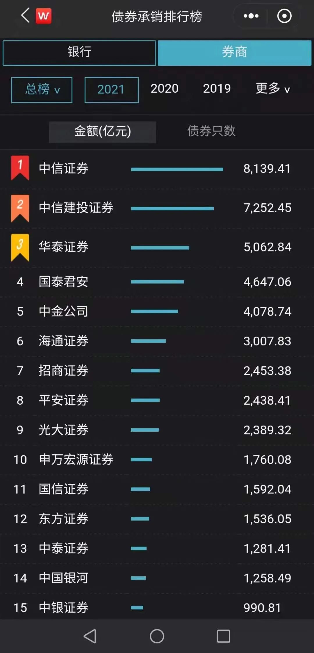 Wind数据显示,去年,申万宏源承销金额为2291.96亿元,排名行业第十一。2021年上半年,申万宏源证券这一数据为1760.08亿元(相当于2020年承销金额的77%),位居榜单第十。