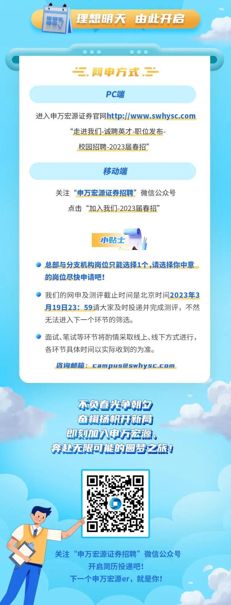 申万宏源2023届“新申力计划”春季校园招聘正式启动!