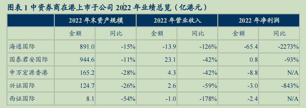 2022年以来,几家中资券商在港上市子公司的经营纷纷遭遇挫折。2022年申万宏源香港大幅亏损8.8亿港元,2023年上半年依然亏损。