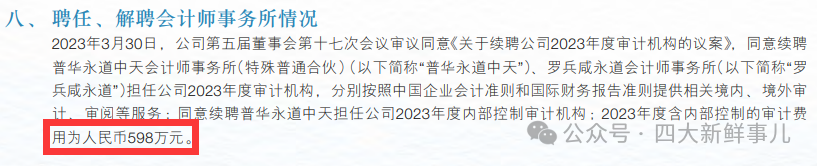 根据该公司2023年年报披露,该公司2023年支付给普华永道598万元的审计费用。