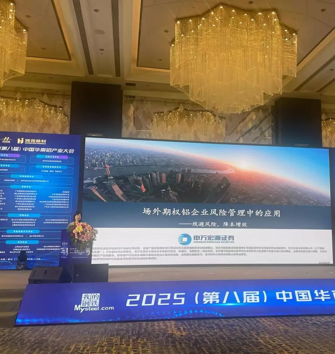 会上,相关协会领导、宏观专家、集团高管以及各地铝行业企业负责人及行业参与者,从政策影响、产业发展、技术创新、价格趋势等多角度详细剖析当前的市场环境及未来发展。申万宏源业务专家结合铝行业典型案例进行专题分享,深入剖析场外期权、含权贸易等工具的灵活应用场景,并针对原材料采购、库存保值及销售定价等环节设计定制化套保方案,为参会企业提供从理论到实践的全方位指导。
