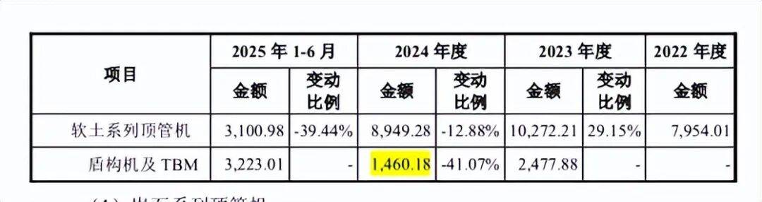 一轮问询回复68页、69页显示,报告期内,公司非开挖成套装备产品收入分别为 22,948.73万元、27,293.13万元、26,065.64万元和12,849.29 万元,其中,2023年和2024年公司盾构机及TBM的收入分别为2,477.88万元、1,460.18万元。